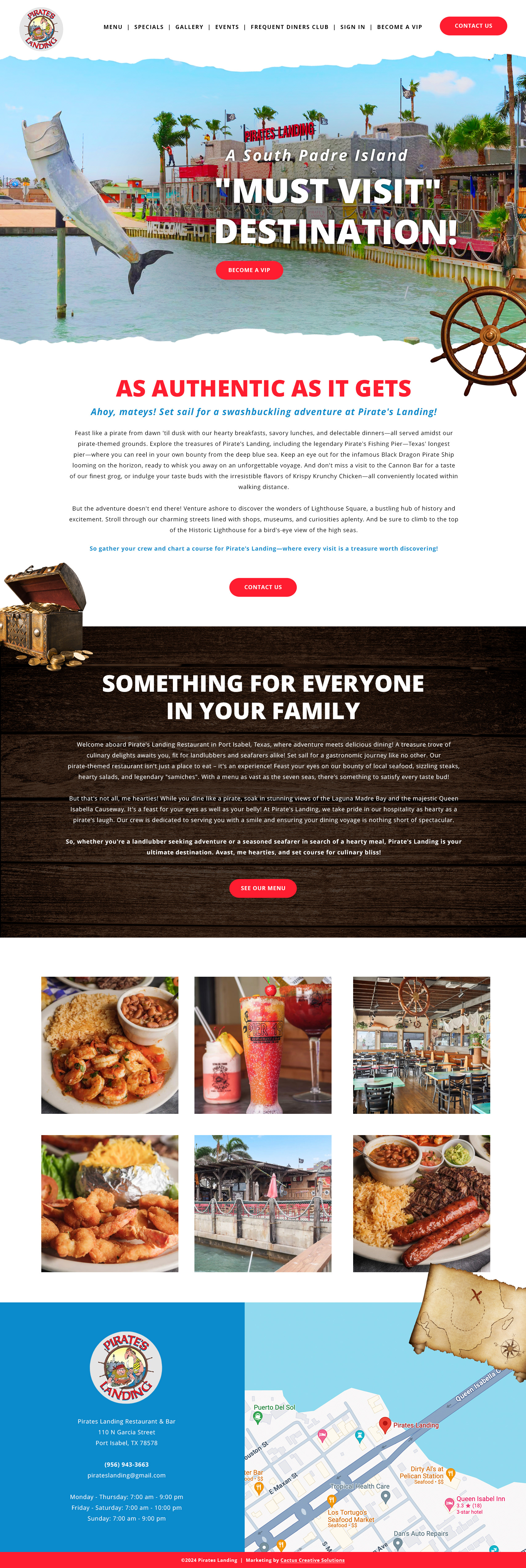 I had the privilege of redesigning the website for Pirates Landing, a vibrant tourist destination and restaurant on South Padre Island. This project was part of a broader collaboration with the client, who owns multiple restaurants on the island, and I’ve had the opportunity to create websites for several of their establishments.
